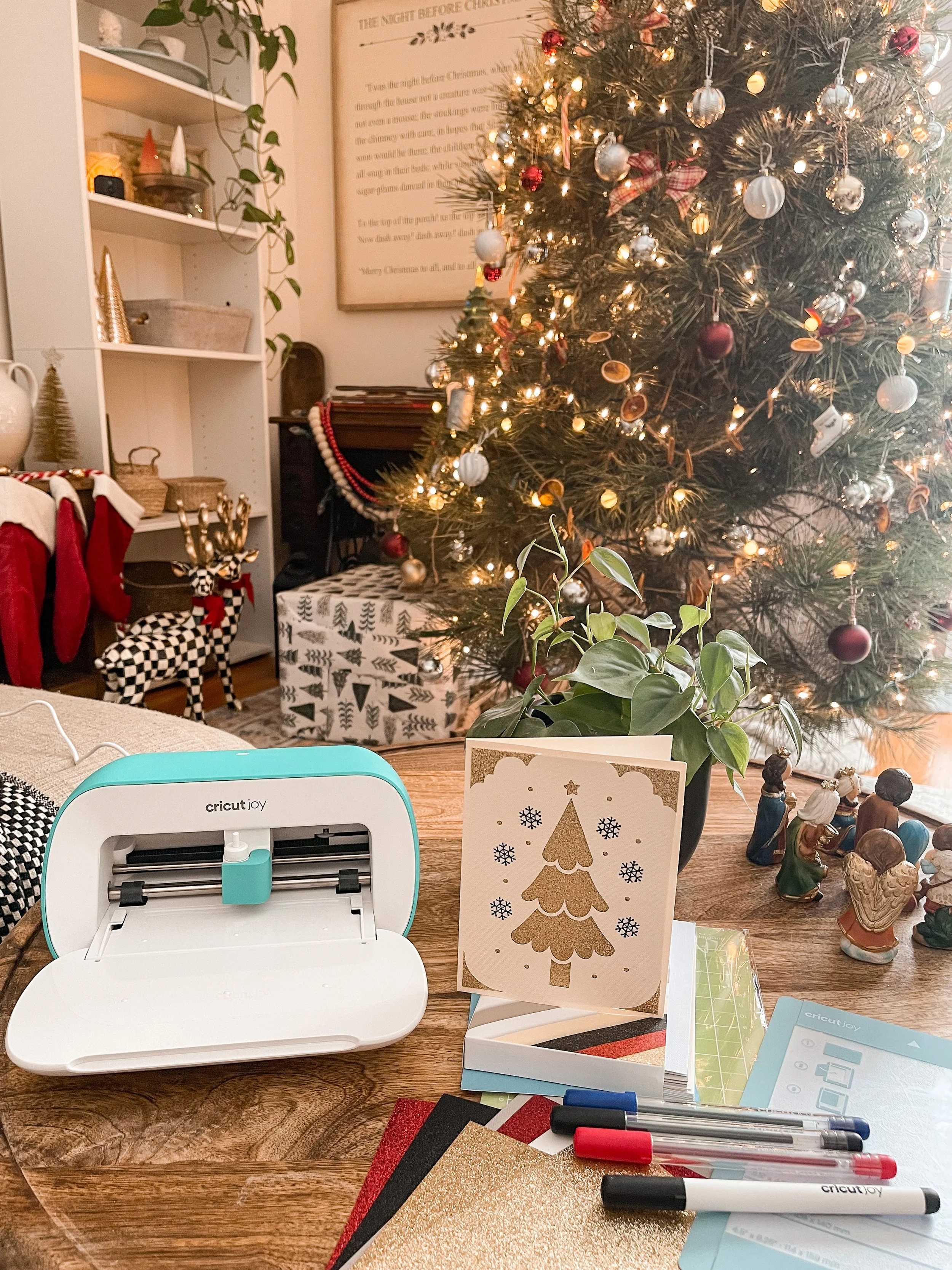 Have you ever used a Cricut machine? I have become obsessed since trying out this Cricut Joy! I made this custom holiday card that I am going to give to my in laws! It came out so pretty and it was super easy to do!