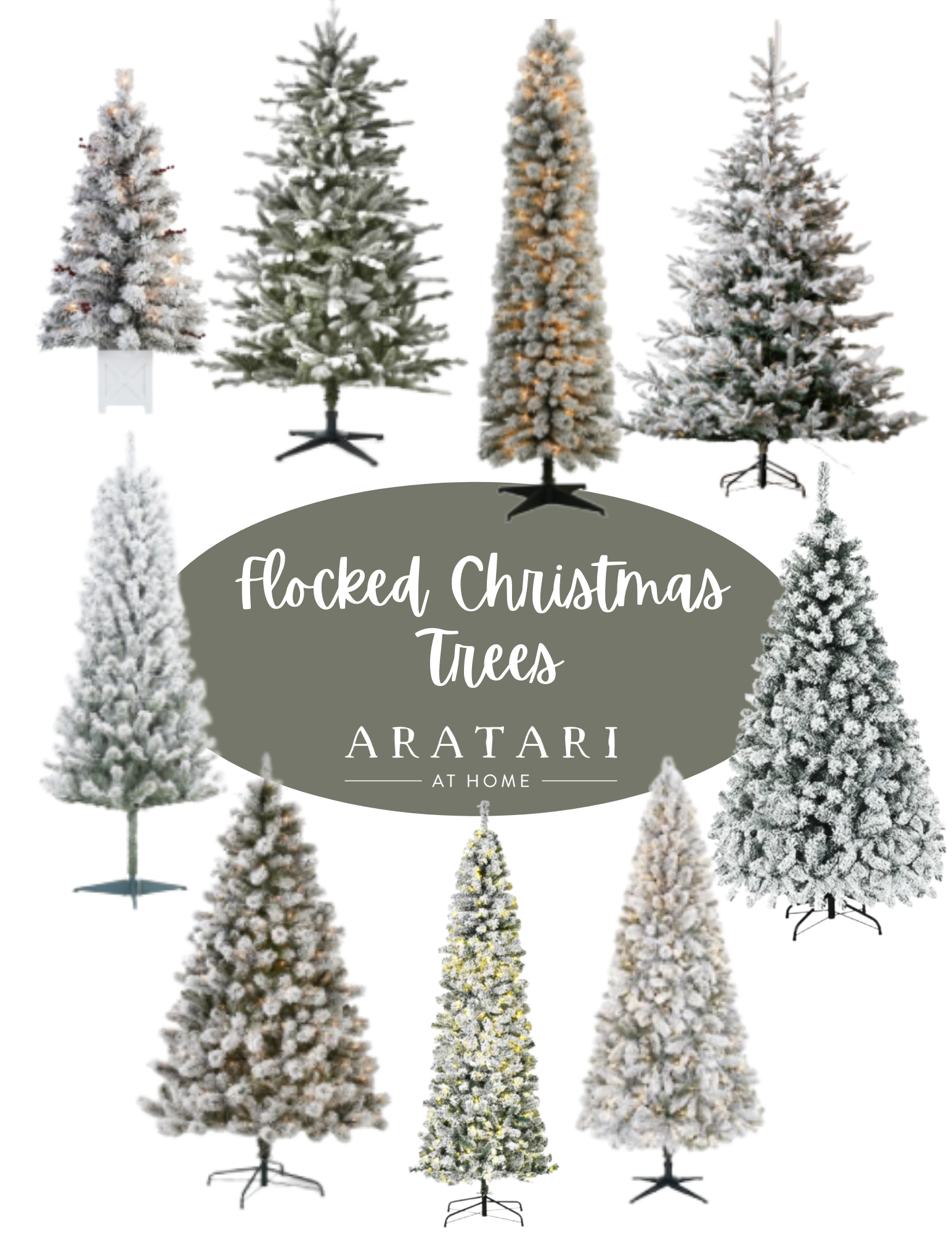 The flocked tree trend isn’t going away! I love the look of a flocked tree as it adds so much coziness and warmth to a space. I think they are so pretty when lit up!