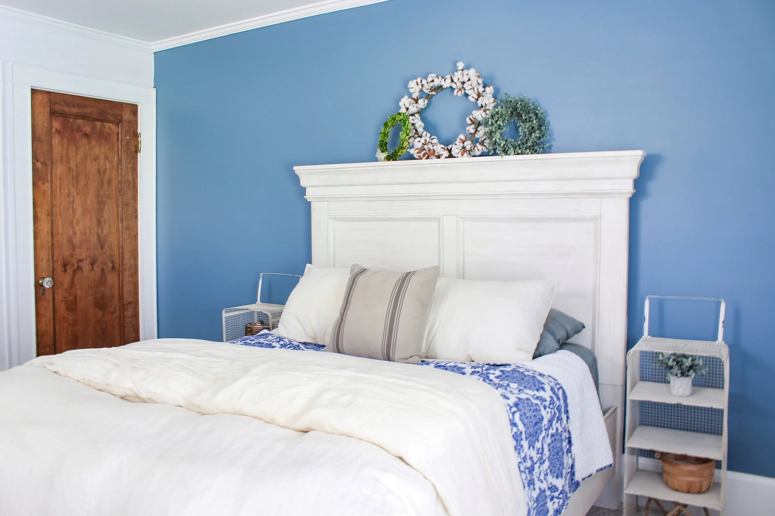 The Behr 2019 color of the year is called Blueprint and I loved how it was shown at the event so I decided to use it as an accent wall in the guest bedroom!