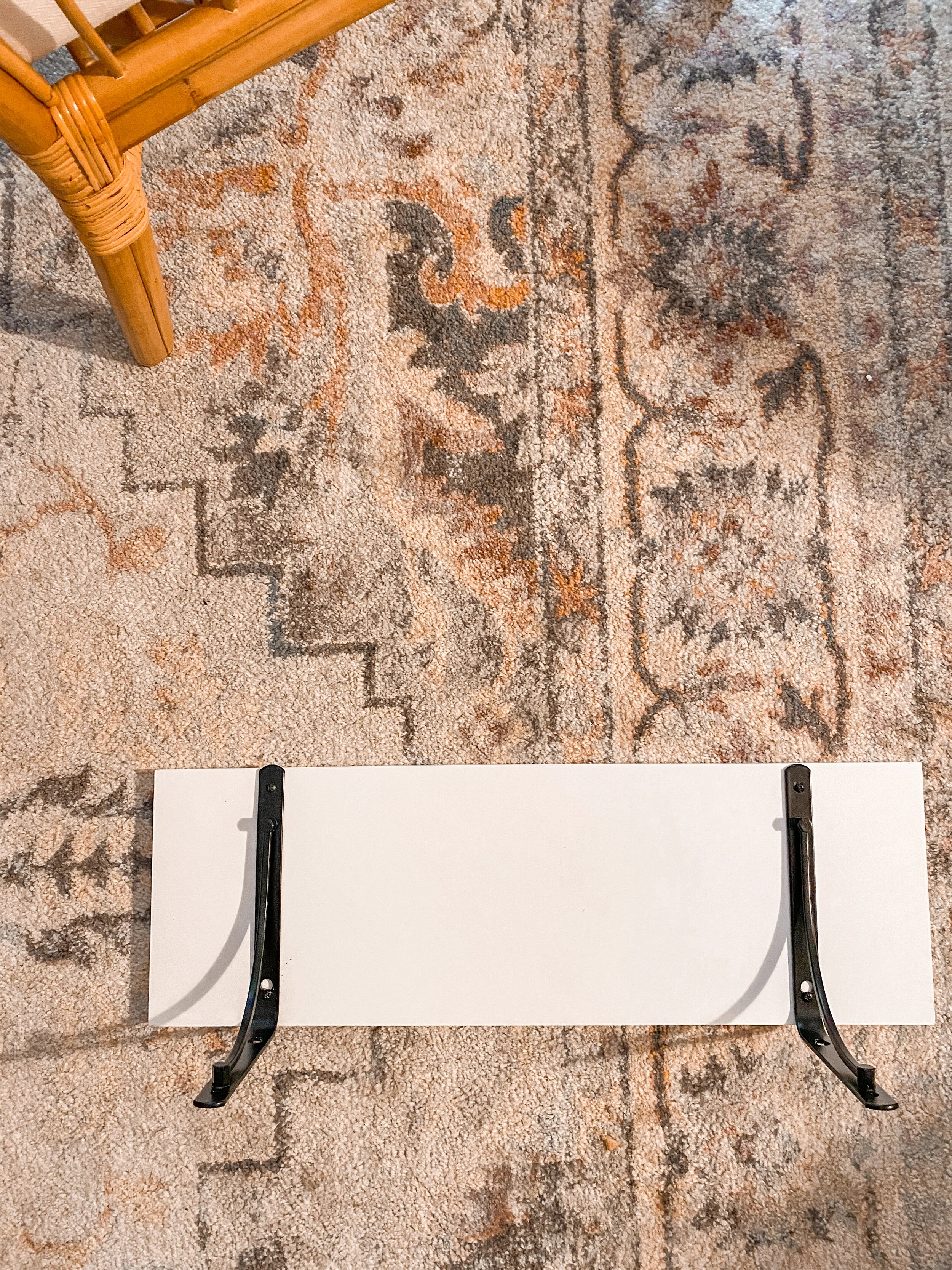 Since moving into the new house, we have been taking lots of trips to Home Depot for all the things! I found these shelf supplies and knew we could quickly whip one up and make it exactly how we wanted!
