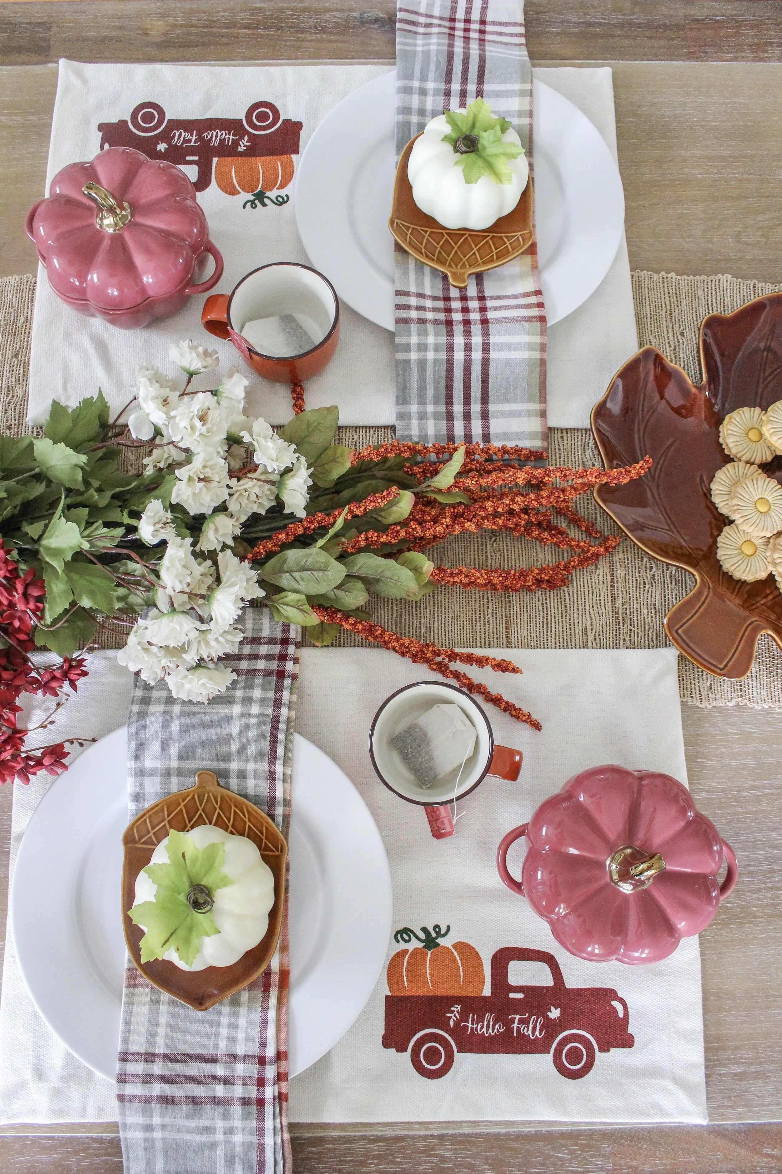 I shopped at Christmas Tree Shops AndThat! for this entire tablescape! I love their Fall assortment. So many fun finds in a variety of price points and styles! Love that you can find high quality items at affordable prices. Makes decorating each season much easier! I went for a more traditional color palette, but Christmas Tree Shops AndThat! has all different colors for Fall to fit any style!