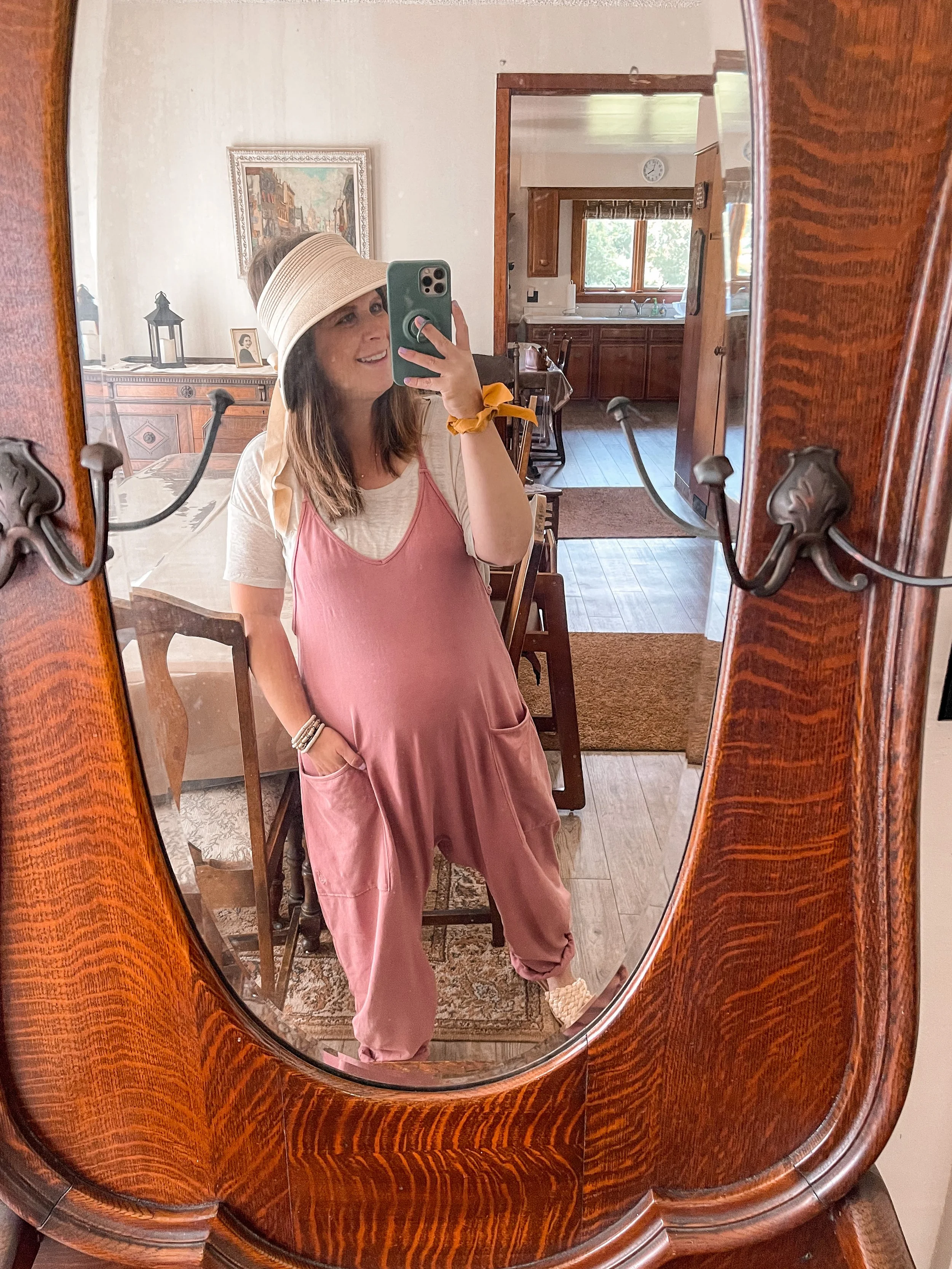 This romper is a complete outfit which I love. It’s so easy to throw on and feel put together. The pockets are great and I love the button details. This is maternity, but I will be rocking this well into postpartum, especially since it buttons so I can easily nurse.