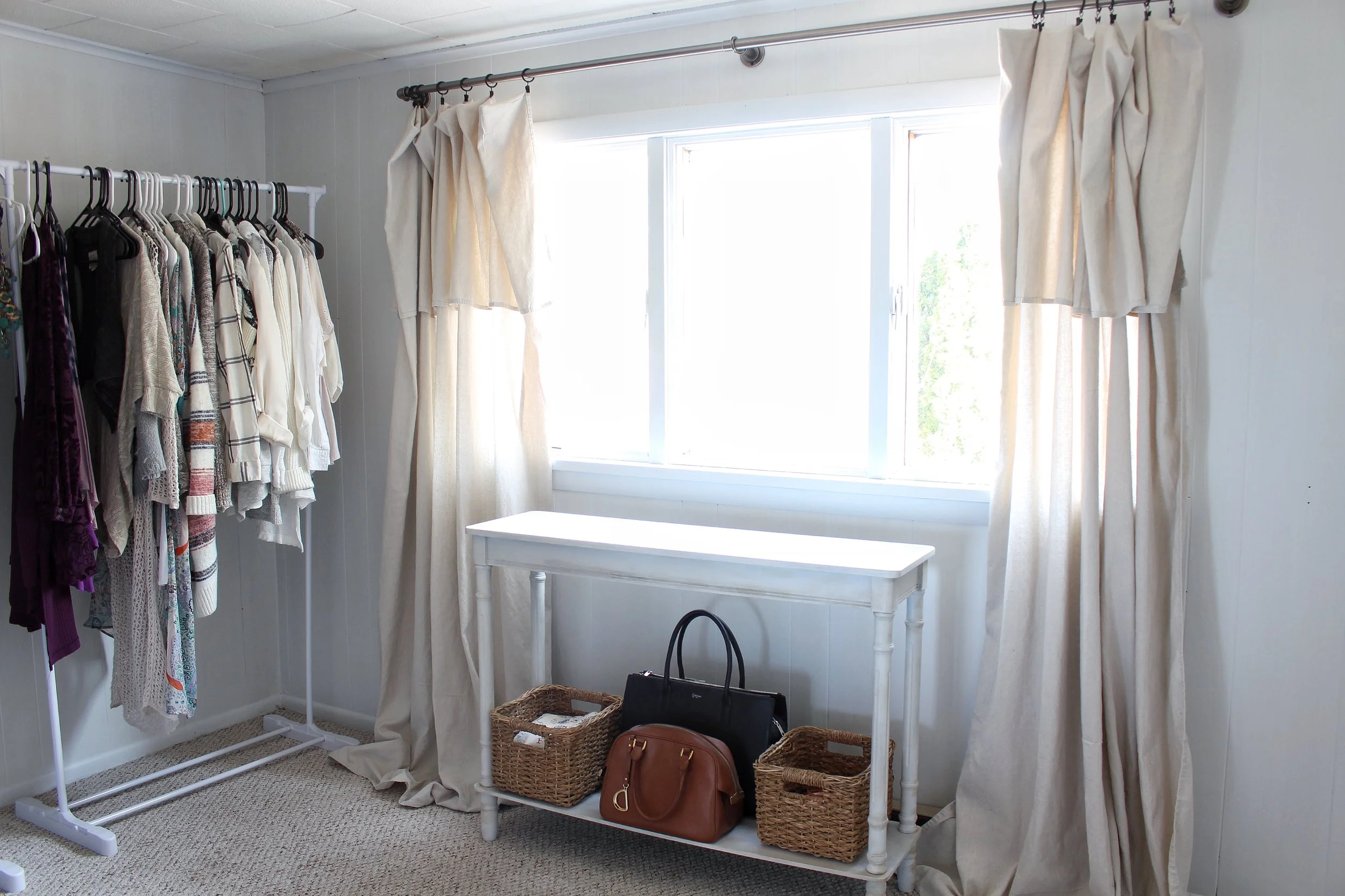 I always say, paint really makes a difference & this room might be the biggest transformation to date. My sister was a huge help in getting this all done in a weekend. My hubby also pitched in to help remove the old shelving & hang the curtain rods.