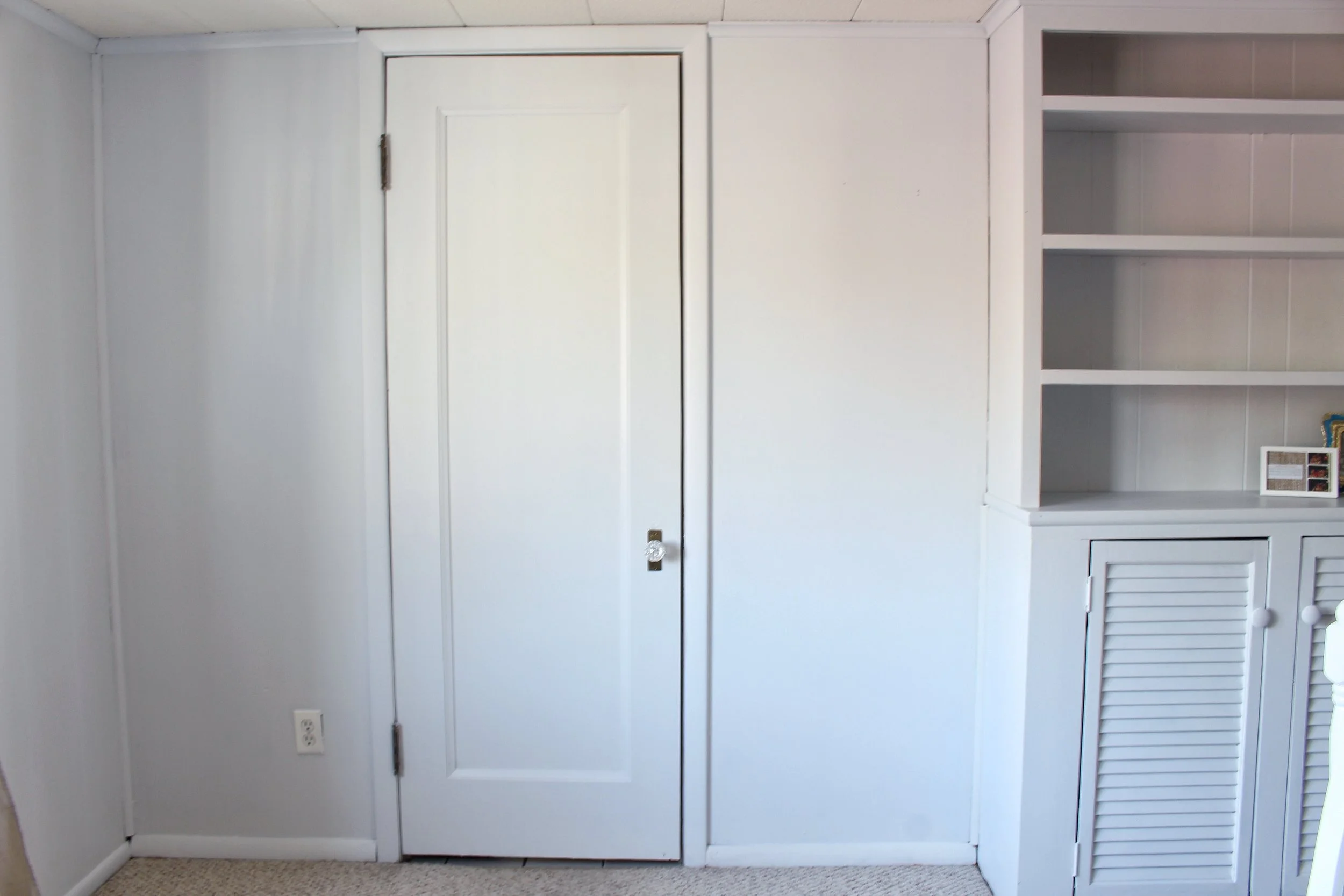 I knew the first thing I wanted to do was PAINT because it would instantly transform the room. I chose Behr Silent White to brighten the space. It took about 3 coats to really cover all the dark wood/brown.